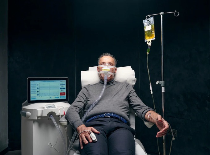 Đây là khung cảnh ở Hum2n tại Chelsea - một trong những trung tâm "biohacking" đầu tiên của London, Anh, nơi cung cấp những liệu pháp tiên tiến nhất trong ngành công nghiệp kéo dài tuổi thọ. Chiếc mặt nạ trên thực chất là một thiết bị ReOxy, mô phỏng điều kiện thiếu oxy để kích thích hoạt động của phổi và tim, đồng thời tăng cường trao đổi chất. Đứng sau trung tâm này là tiến sĩ Mohammed Enayat, một "tay chơi" biohacking chính hiệu. Ông có đội ngũ 28 chuyên gia và đang lên kế hoạch mở rộng thêm nhiều phòng khám khác ở London và Ả Rập Saudi.