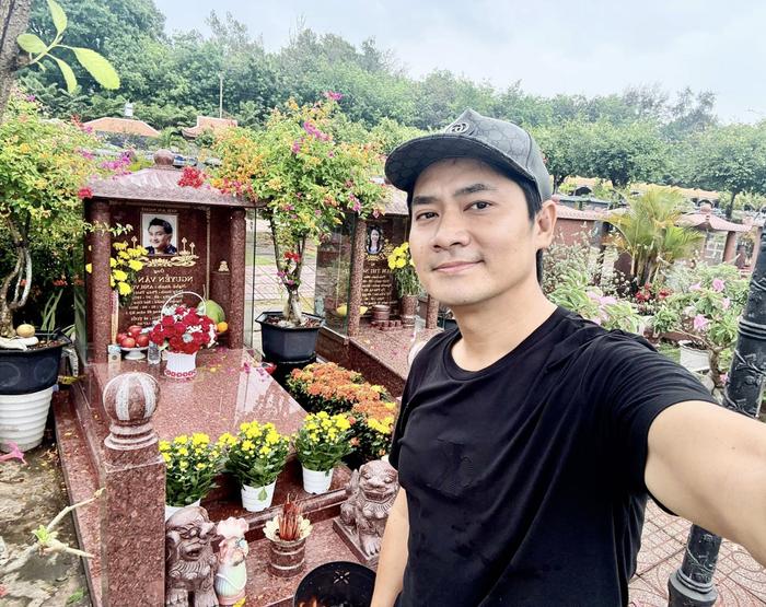 Minh Luân đến viếng mộ Anh Vũ trong ngày giỗ lần thứ 6 của nam nghệ sĩ. (Ảnh FBNV)