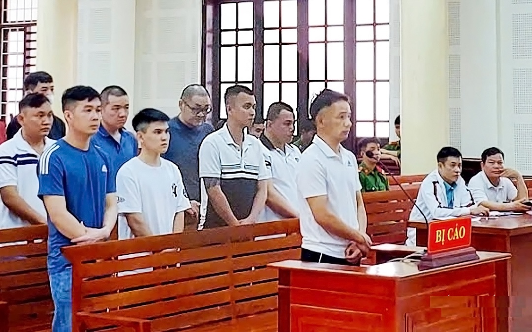 Nhóm bị cáo tại phiên tòa. (Ảnh: Quốc Nam/Tuổi Trẻ)