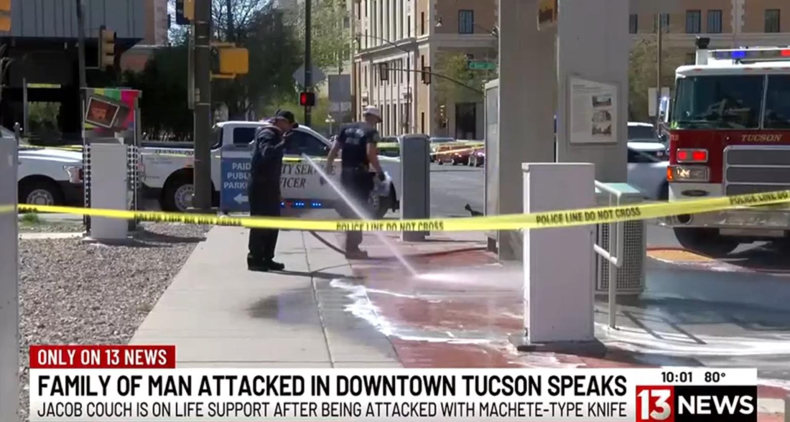 Vụ tấn công xảy ra vào ngày 5/4 tại trung tâm thành phố Tucson, bang Arizona, khi vợ chồng Jacob Couch (32 tuổi) đang ngồi chờ xe buýt trong hành trình về quê nhà ở bang Alabama.