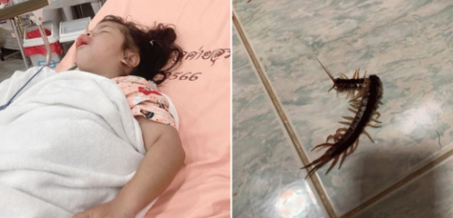 Người mẹ đă vô cùng lo lắng khi cô con gái 3 tuổi của ḿnh đột nhiên hét lên đau đớn vào giữa đêm. Sau đó, bà phát hiện ra rằng cô bé đă bị một con rết lớn cắn vào môi, gây sưng tấy và chảy máu.