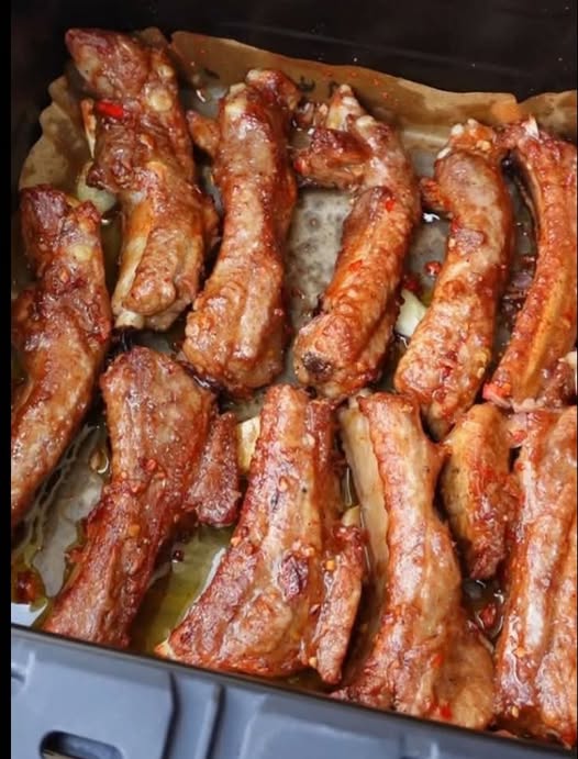 Nướng bằng nồi chiên không dầu: Đặt sườn vào nồi chiên không dầu, nướng ở 180°C trong 15 phút, sau đó lật mặt và nướng tiếp 5–10 phút.