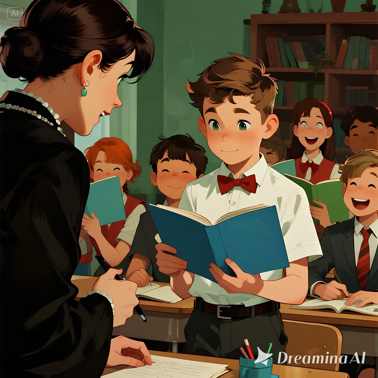 Vova đứng đọc bài trước lớp, cả lớp cười rộ.