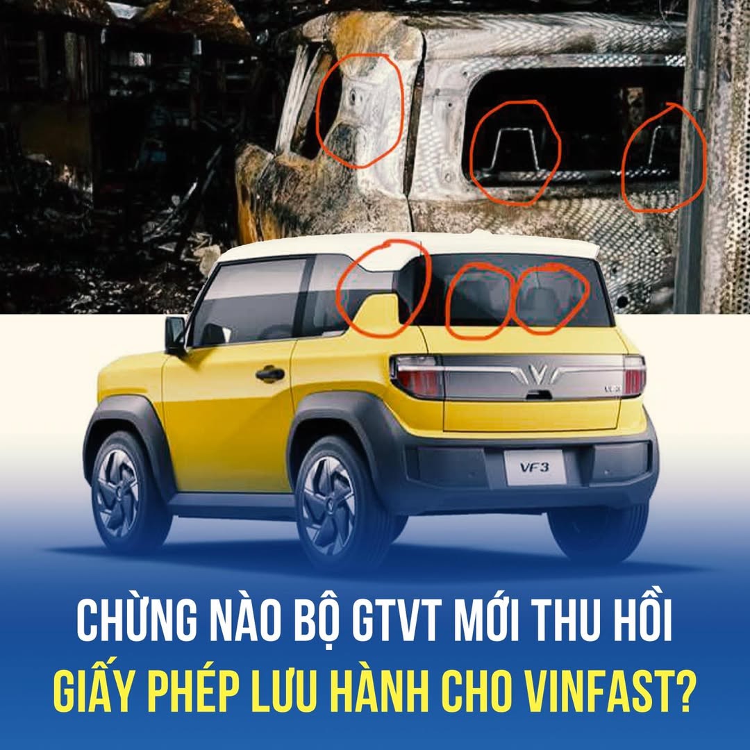 Tri Nguyen: “Vụ cháy xe VF3 đêm 6/7 làm tám người thiệt mạng. Đang có chỉ đạo định hướng nói đây không phải xe VF3. Các bạn DLV so sánh nè. Đừng có mà vào đây giẫy đành đạch nói không phải xe VinFast nhé“.