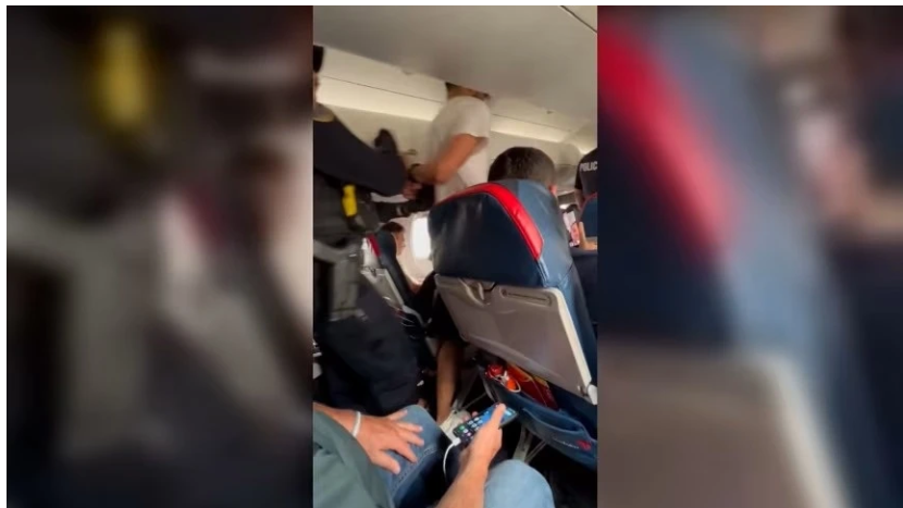 Đoạn video do một hành khách quay lại và đăng lên mạng xã hội cho thấy lực lượng an ninh áp giải một người đàn ông khỏi máy bay trong tình trạng bị còng tay ra sau lưng.