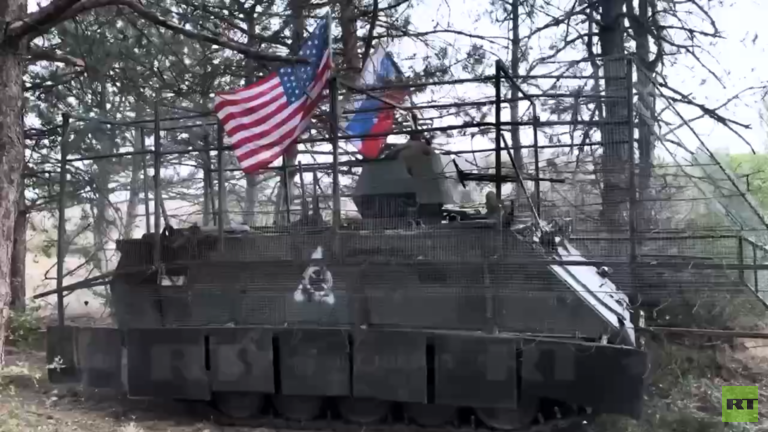 Một nhóm binh sĩ Nga đã điều khiển chiếc xe bọc thép chở quân M113 do Mỹ cung cấp, vốn bị thu giữ từ tay quân đội Ukraine, và giương cùng lúc cờ Nga và cờ Mỹ trong đoạn video gây bão mạng những ngày qua.
