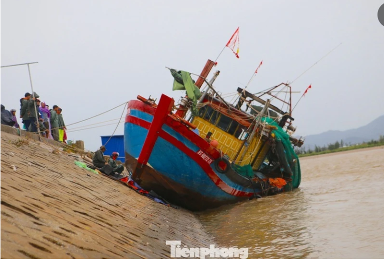 Rạng sáng 26/8, khi cơn bão số 5 đi qua, người dân xã Thiên Cầm (Hà Tĩnh) vội vã ra khu neo đậu tàu thuyền ở cảng Cửa Nhượng để trục vớt những chiếc thuyền bị chìm và sửa lại con tàu bị hư hỏng nặng. Tại đây, con tàu 380CV của gia đình ông Nguyễn Trọng Việt (60 tuổi, xã Thiên Cầm) nằm vắt nửa thân mình lên phần bờ kè, cạnh đó có nhiều chiếc thuyền của ngư dân khác cũng đắm chìm trong nước, có số bị vò nát. “Quá khủng khiếp, đây là cơn bão lịch sử gây thiệt hại nặng nề cho ngư dân vùng này”, ông Việt nói.