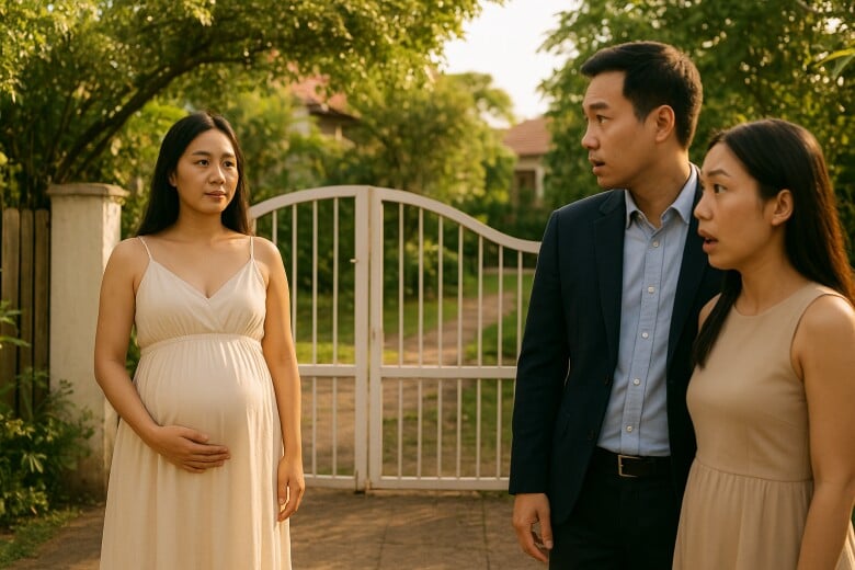 Một chiều cuối tuần, khi thai đã gần 6 tháng, cánh cổng sắt nhà tôi vang lên tiếng chuông. Mở cửa, tôi chết lặng: chồng cũ đứng đó, tay choàng vai một người phụ nữ trẻ mặc váy bó sát. Anh nở nụ cười nửa miệng, ánh nhìn lướt qua ngôi nhà rồi dừng lại trên tôi.