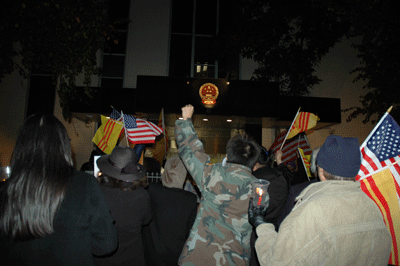 Người Mỹ gốc Việt trong một lần biểu tình chống Trung Quốc trước Lãnh Sự Quán Trung Quốc ở Los Angeles. (Hình: Ðỗ Dzũng/Người Việt)