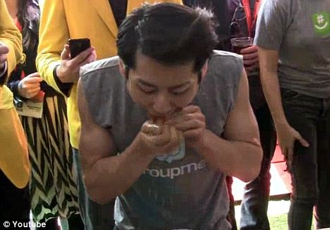 "Vua ăn" lập kỷ lục "chén" 13 chiếc bánh trong 60 giây