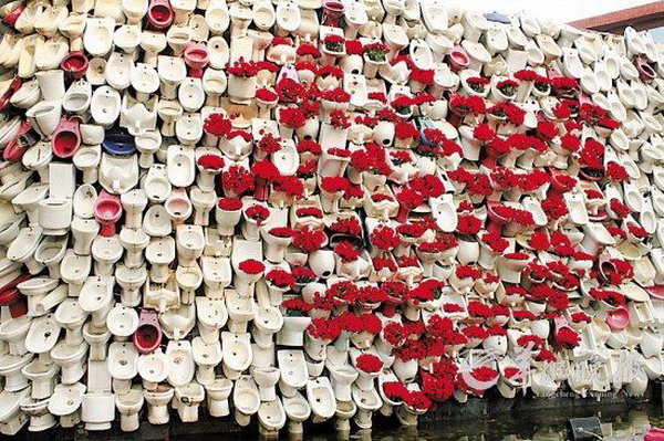 Trung Quốc: Cắm 6.000 bông hồng vào... bồn cầu để cầu hôn