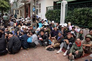 Nông dân các tỉnh phía Bắc tập trung về Hà Nội phản đối việc chính quyền địa phương trưng thu đất./AFP photo