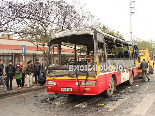 Truy bắt 2 tên đốt rụi xe buýt