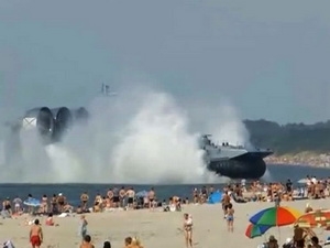 Siêu tàu đổ bộ Bò Rừng lao lên bãi tắm, du khách hoảng loạn
