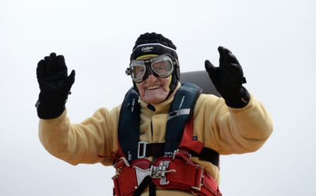 Cụ ông 93 tuổi đứng trên cánh máy bay