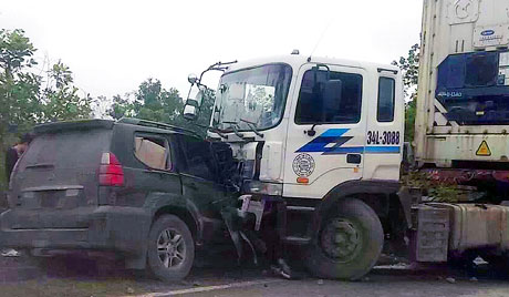 Vụ tai nạn giao thông xảy ra vào khoảng 11 giờ, ngày 8-4, trên Quốc lộ 18, đoạn qua xã Đường Hoa (huyện Hải Hà, Quảng Ninh). Tại hiện trường xe container BKS 34L-3088 đi hướng Móng Cái - Hạ Long đối đầu nhau với xe Lexus đi hướng ngược chiều trên phần đường của container. Cú đâm mạnh khiến xế hộp Lexus này bị nát gần hết phần đầu, túi khí an toàn trên xe đã bật ra. 2 nạn nhân bị thương đã được đưa đi cấp cứu.