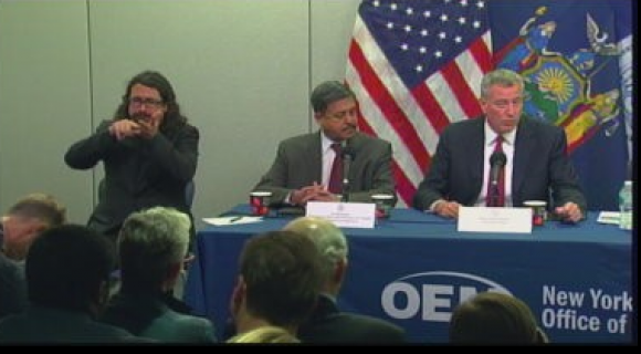 Thị Trưởng thành phố New York Bill de Blasio và Ủy Viên Y Tế Mary Bassett cập nhật thông tin về bệnh nhân Ebola mới nhất và cũng là trường hợp đầu tiên tại thành phố New York. Bác sĩ Craig Spencer, 33 tuổi, được xe cứu thương đưa tới bệnh viện Bellevue vào chiều Thứ Năm, 6 ngày sau khi từ Guinea trở về và từng điều trị cho các bệnh nhân Ebola ở đó. Bác sĩ Spencer đang được cách ly tại bệnh viện. Hôn thê và hai người bạn của ông Spencer cũng được cách ly. Thị trưởng nhắc lại rằng căn bệnh chết người này không lây nhiễm qua tiếp xúc thông thường mà chỉ qua tiếp xúc trực tiếp với dịch thể. Các thanh tra bệnh truyền nhiễm đang truy cứu gốc tích các hoạt động của ông Spencer, bao gồm đi bộ tới High Line và tới nhà hàng Meatball vào hôm Thứ Ba ngày 21 tháng 10, chạy 3 dặm và đi tàu điện ngầm tới nơi chơi bowling ở Brooklyn vào hôm Thứ Tư. Các viên chức cho biết ông thường xuyên đo nhiệt độ mỗi ngày trước Thứ Năm và không có bất kỳ triệu chứng nào ngoài mệt mỏi, do đó ông ít có khả năng lây nhiễm cho người khác.