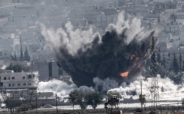 Một mục tiêu bị máy bay chiến đấu oanh kích tại Kobane.