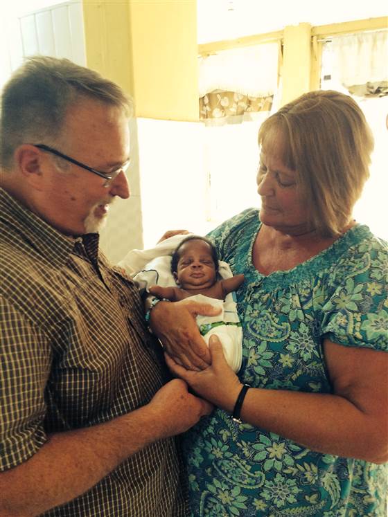 Jeane và Paul bên đứa bé mới nhận nuôi.