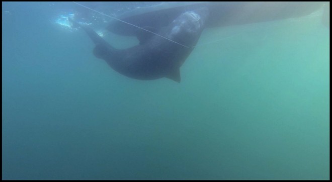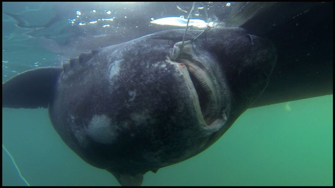 Nước biển rất trong nên Joel có thể thấy rõ con cá ở độ sâu khoảng 15 m. Con cá mập Greenland có khối lượng 569 kg,dài 4m và đã sống khoảng 200 năm.