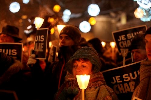 Người dân Paris tham dự lễ cầu nguyện cho những nạn nhân trong vụ thảm sát ngày 7.1 - Ảnh: Reuters