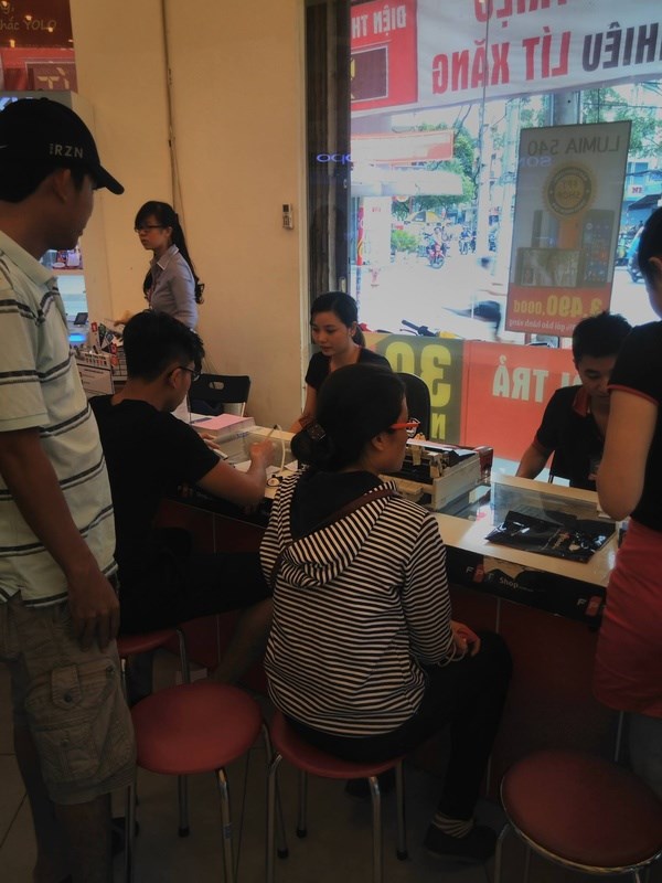 Người viết đến FPT Shop ở Khánh Hội, TP.HCM thì thấy số người đứng vọc Bphone không nhiều.