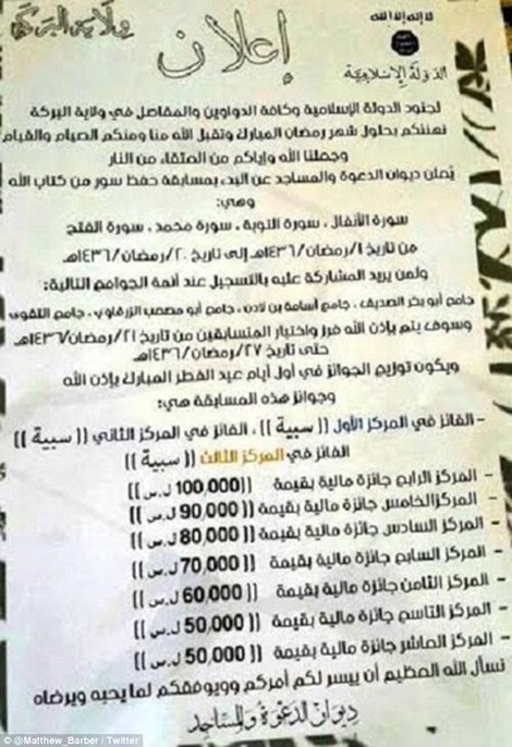 Các chương trong kinh Koran được chọn cho cuộc thi này là những đoạn hiếu chiến nhất trong toàn bộ cuốn sách, bởi các chiến binh IS tin rằng tháng Ramadan là thời gian lý tưởng cho chủ nghĩa cực đoan tôn giáo.