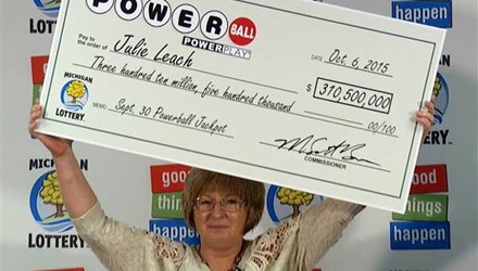 Theo NBC News, chủ nhân may mắn của tấm vé số trên là bà Julie Leach, 50 tuổi. Bà làm việc cho nhà máy sợi thủy tinh Aquatic Bathware ở bang Michigan, Mỹ. Trong giờ giải lao tại cửa hàng McDonald giữa ca trực đêm hôm 30/9, bà như không tin vào mắt mình khi so từng số trên tấm vé và nhận thấy trùng với giải độc đắc.