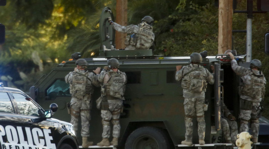 Cảnh sát được triển khai khắp TP San Bernardino sau vụ xả súng. Ảnh: Los Angeles Times