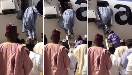 Những bức ảnh được đăng tải trên mạng xã hội cho thấy, các hành khách trèo lên khoang máy bay Boeing 737 của hãng hàng không Aero Contractors bằng một chiếc thang . Sự việc xảy ra tại sân bay ở thành phố Bauchi, Nigeria hôm 19/12 vừa qua.