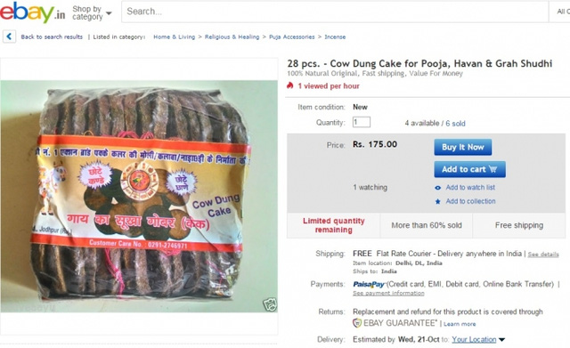Giống như nhiều nơi trên thế giới, Ấn Độ đang bước vào mùa mua sắm trực tuyến cuối năm. Tuy nhiên, có một mặt hàng chỉ Ấn Độ mới có, thậm chí còn bán chạy như tôm tươi đó là chả phân bò.