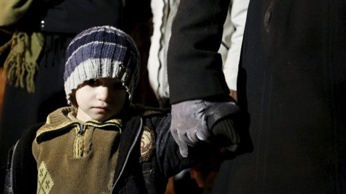 Người dân và trẻ em ở thị trấn Madaya đang chờ đợi được sơ tán. Ảnh: Reuters
