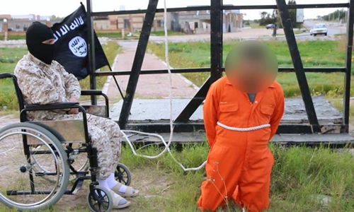 Hình ảnh được đăng kèm với chú thích bằng tiếng Arab "xử tử các gián điệp tại thành phố Sirte", nơi đang bị IS kiểm soát. Hiện vẫn chưa rõ phiến quân ngồi xe lăn có bị liệt thực sự hay không.