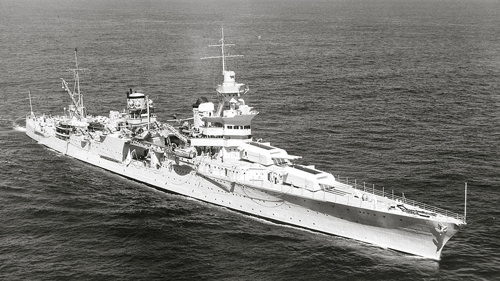 Nửa đêm hôm đó, hạ sĩ thủy quân lục chiến Eggar Harrell rải chiếu rơm ngay trên boong tàu để ngả lưng sau khi kết thúc ca trực. Harrell chỉ mới chợp mắt được một lúc thì bất ngờ nghe thấy một tiếng nổ lớn, và chiếc tuần dương hạm bắt đầu nổ tung.