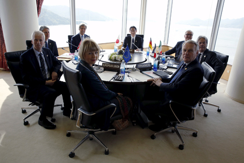 Ngoại trưởng các nước và Liên minh châu Âu gặp nhau trong khuôn khổ hội nghị G7 tại Nhật Bản. Ảnh: Reuters