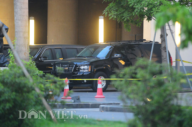Chiếc xe Cadillac One dành riêng cho Tổng thống Mỹ Barack Obama đã xuất hiện tại Hà Nội cùng đoàn xe hộ tống.