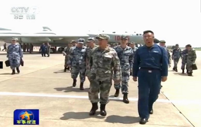 Gần đây, 3 Thượng tướng Trung Quốc do Thượng tướng Phạm Trường Long, Phó Chủ tịch Quân ủy Trung ương Trung Quốc đã thị sát Chiến khu miền Nam và ra chỉ thị "sẵn sàng chiến đấu" cụ thể ở Biển Đông. Ảnh: CCTV.