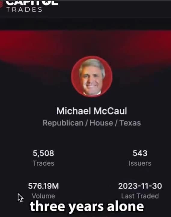 - Chỉ riêng trong 3 năm qua, Michael McCaul đã giao dịch 576.000.000 đô la trên thị trường chứng khoán.