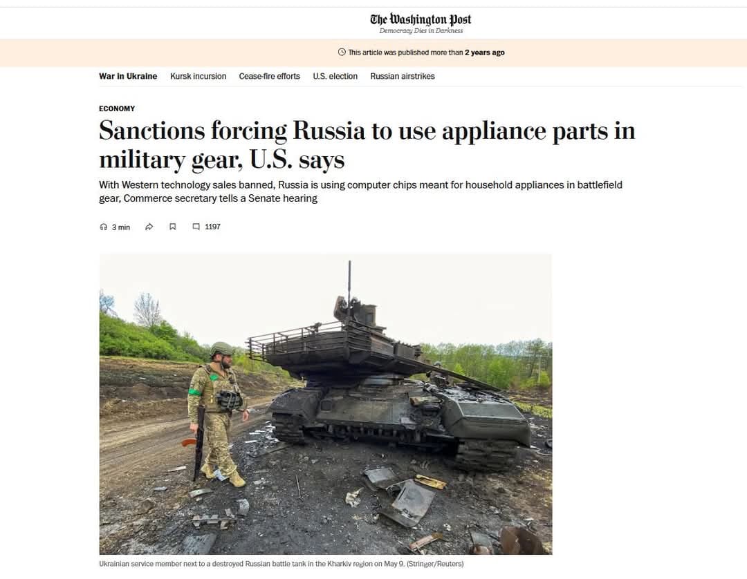 Lại tiếp thêm tin: Nga kiệt quệ không có chip làm vũ khí, phải ăn cắp máy giặt , máy xấy của dân Ukraine để gở phụ tùng, làm các loại vũ khí đơn sơ.