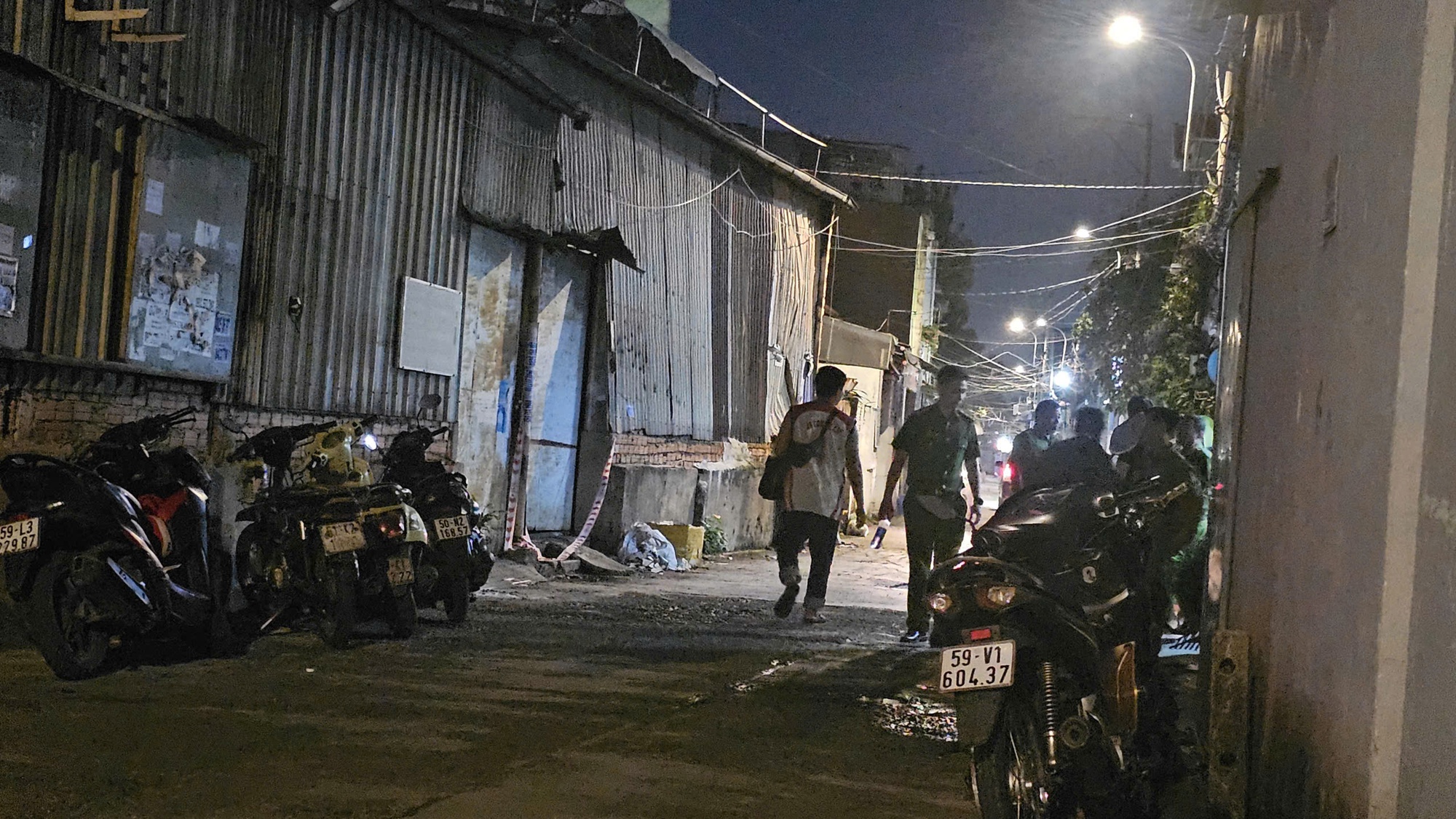 Công an quận Bình Tân đang phong tỏa hiện trường điều tra nguyên nhân vụ cháy xưởng cơ khí tại hẻm 479 đường Tân Hòa Đông phường Bình Trị Đông, quận Bình Tân, TP.HCM. Ảnh: Chinh Hoàng