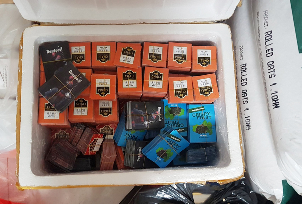 Các gói nước vui thành phẩm do nhóm này sản xuất. Ảnh: Công an cung cấp