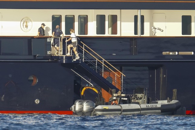 Ông chủ Amazon có vẻ như không có mặt trên du thuyền vào thời điểm đó. Tuy nhiên, cánh săn ảnh chụp được vị hôn thê của ông, Lauren Sánchez, đang tắm nắng trên boong tàu.
