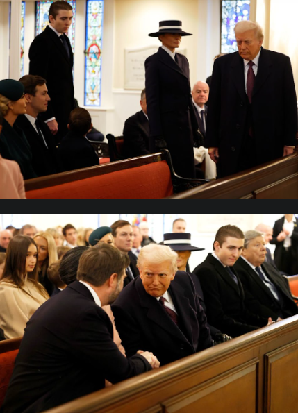 Barron xuất hiện cùng cha tại buổi lễ ở Nhà thờ St. John's với diện mạo mới đầy thu hút. Anh chàng cao 2m gây ấn tượng và bất ngờ với mái tóc được cắt ngắn gọn gàng lạ mắt, thể hiện sự trưởng thành trong từng khung hình.