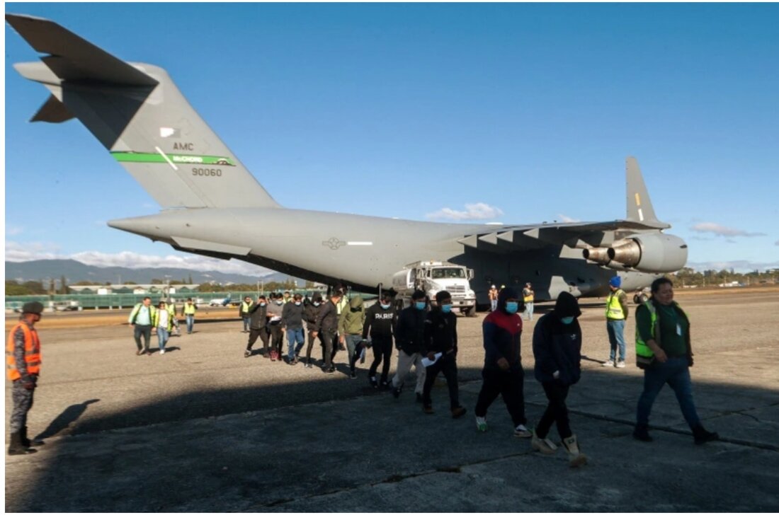 Một máy bay quân sự của Mỹ chở theo người di cư hạ cánh ở Guatemala. (Ảnh minh họa: Getty Images/ New York Times)