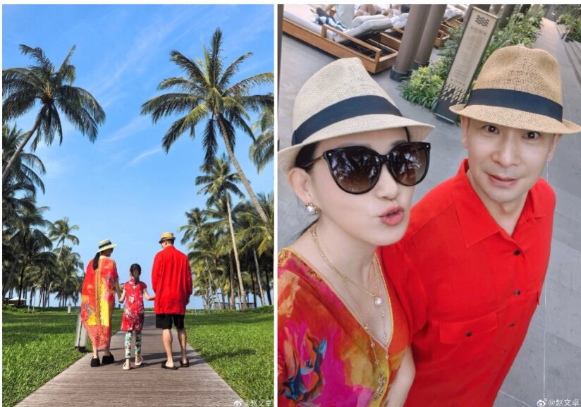 Triệu Văn Trác tận hưởng kỳ nghỉ tại Việt Nam cùng vợ và các con. Ảnh: Weibo.