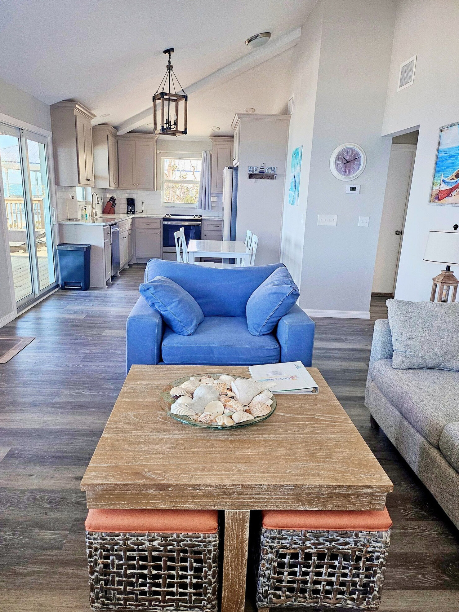 Nội thất theo phong cách Coastal nhẹ nhàng, tươi sáng, gợi nhắc đến biển với các tông màu trắng kem, xanh lam.