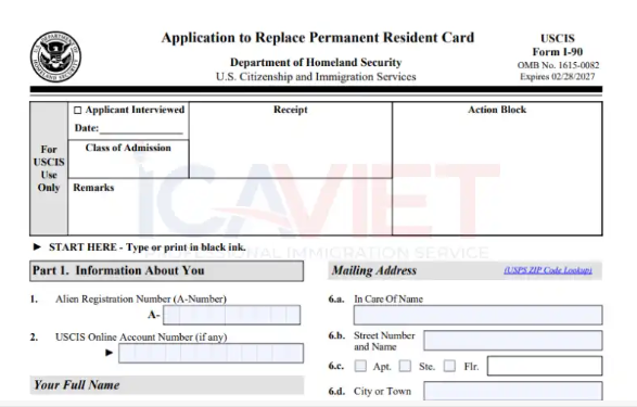 Form I-90 (Đơn xin thay thế thẻ xanh)