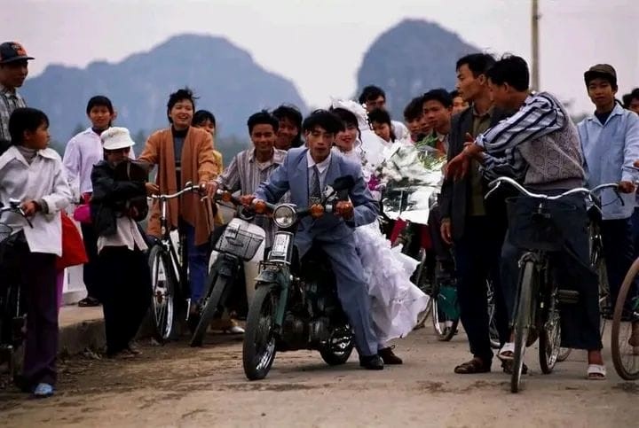 Một thời gian bao cấp, thời đó ai làm đám cưới, đi đăng ký kết hôn, thì được một phiếu m;ua một tút thuốc lá và mấy gói chè cám để làm đám cưới, thuốc lá mua được là hàng phân phối, là thuốc Nhị Thanh hoặc Tam Đảo, đấy là những người làm công nhân mới được vào thời bấy giờ. Rồi hai người rủ nhau đi ra hiệu ảnh chụp mấy kiểu ảnh đen trắng, và tô màu phóng to ra làm kỷ niệm của ngày cưới là hạnh phúc lắm rồi