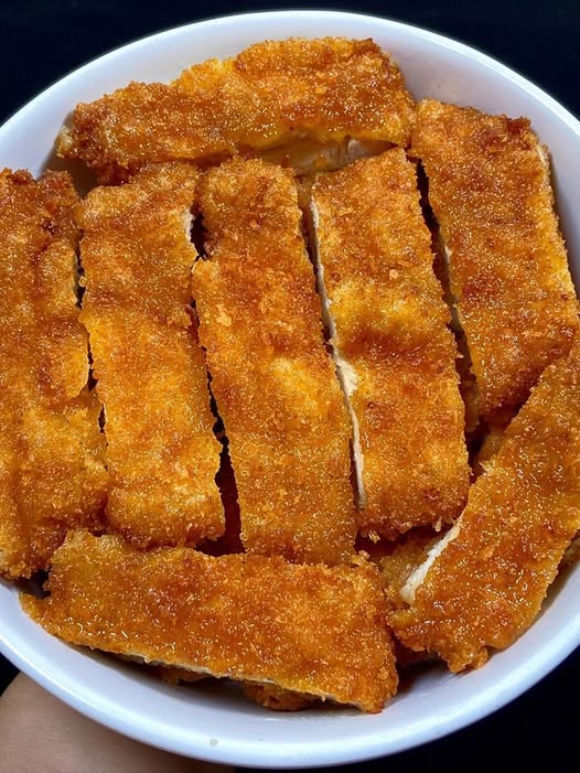 3. Áo qua ức gà với một lớp bột mì, sau đó nhúng ngập miếng thịt vào trứng rồi cho sang bát bột chiên xù