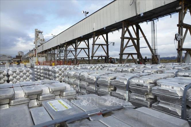 Nhôm thô được xếp tại cảng ở British Columbia, Canada.